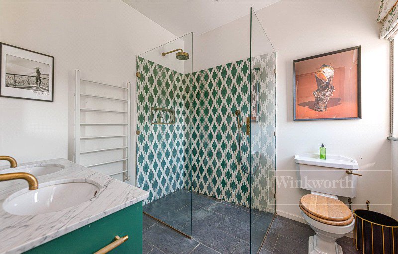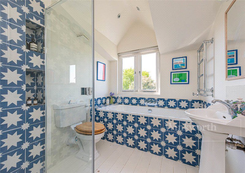 At the far end of the garden, a set of characterful outbuildings present a rare and exciting opportunity for development. Whether incorporated into the main house as additional living or studio space, or reimagined as a self-contained dwelling (subject to the usual planning consents), they offer superb potential for those seeking flexible accommodation, home office space, or investment value.