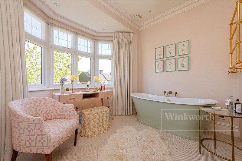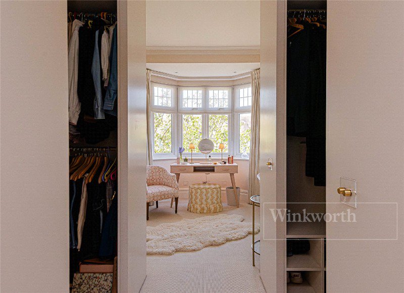 Arranged over three spacious floors, the home offers exceptional accommodation. On the first floor, the impressive master suite boasts walk-through wardrobes, a dedicated dressing room, and a luxurious en-suite shower room. The converted loft provides two further well-proportioned bedrooms and a sleek family bathroom, creating a flexible and private space ideal for guests, older children, or a home office setup.