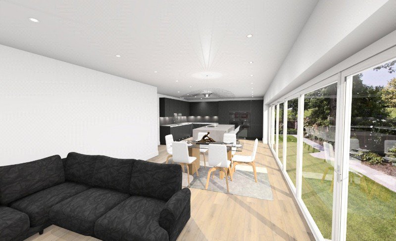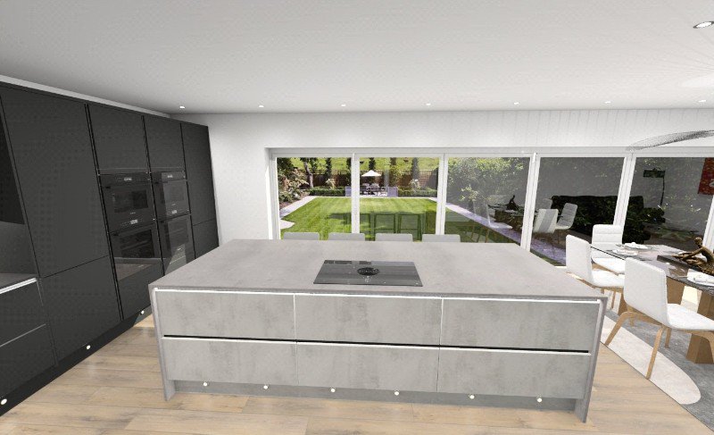 - Large kitchen living family room with central island unit and wide run of bi folding doors