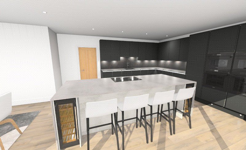The kitchen will be of a quality finish with built in appliances, including dual ovens, convection ovens, integrated fridge and freezer, dishwasher, dual wine fridges and an induction hob with internally vented extraction; the later in the sizable central island unit with stunning waterfall edge profile.