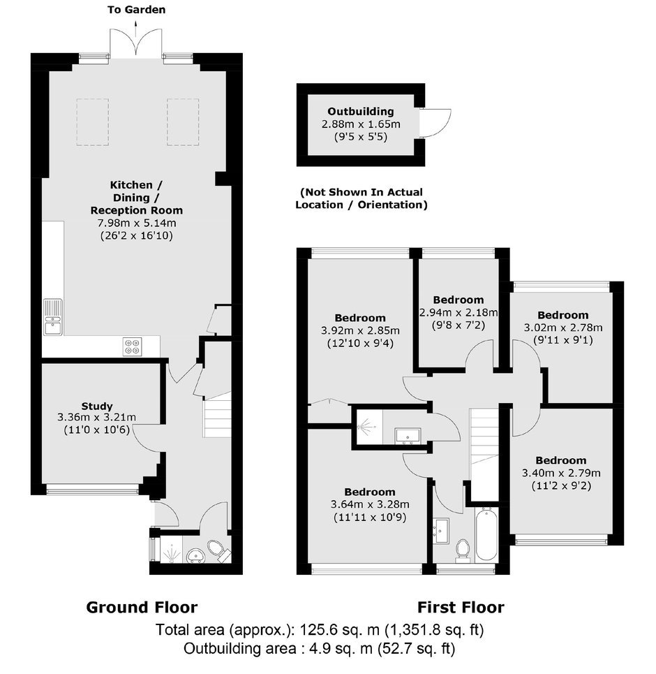 A versatile five bedroom home offered to the market with no onward chain. Spread over 1,351sq.ft this well finished home offers an abundance of living space, benefitting from an extended living area creating a sociable space with access onto a garden with a storage shed and rear access. There is a study to the front and a down stairs w/c. There are five well proportioned bedrooms providing flexibility of working from home or being additional space for an elderly relative.