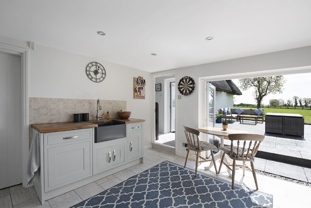 "As with the house, we have given much attention to the outside of the cottage. The driveway has been improved, as has the patio at the rear. The cottage sits within its spacious garden whilst the meadow beyond extends its space. It is an absolute delight to enjoy al fresco dining outside, relax and savour the multitude of visiting wildlife passing over or through our garden, or to watch the seasons unfold. We do take advantage of our local environs and it is so easy to depart direct from the house and enjoy walking in the local countryside."