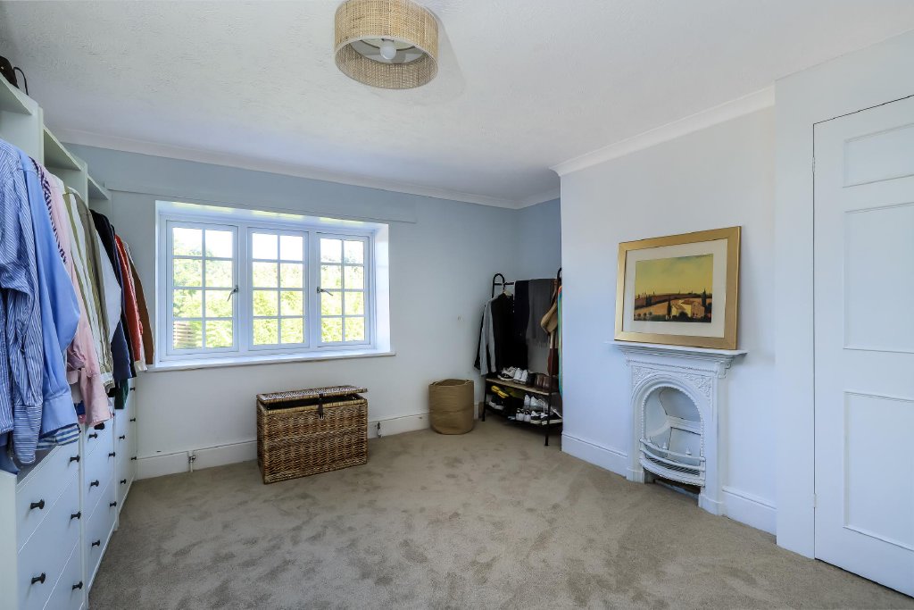 BEDROOM 3 16' 4" x 15' 6" (4.98m x 4.72m) Double glazed window to front aspect overlooking farmland, woodland and towards Portsdown Hill in the distance, radiator, built-in wardrobe with hanging space, shelving and cupboards over, high level window to side aspect overlooking garden, stripped and painted floorboards, ceiling coving.