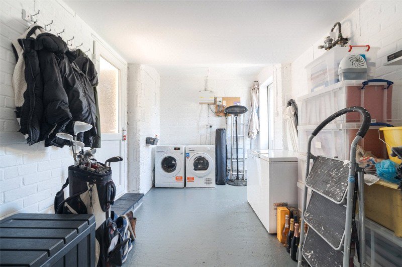 A wide block paved driveway provides ample off road parking and leads to an integral garage with up-and-over door, power, lighting, personal side door, and utility area (with plumbing for washing machine, space for tumble dryer).