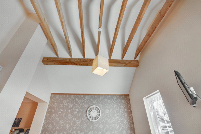 Upstairs, the standout feature is undoubtedly the cathedral-style principal bedroom, which boasts high vaulted ceilings with exposed beams, creating an impressive sense of space and architectural interest. A large dressing room, complete with extensive built-in wardrobes, leads into a smartly presented en-suite bathroom. Three further bedrooms, all well-proportioned, and a family bathroom complete the upper level, offering ample accommodation for a growing family or frequent visitors.