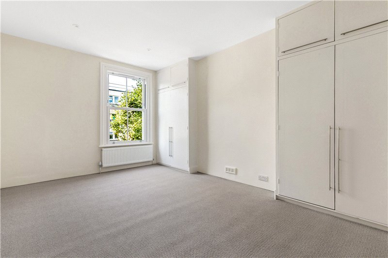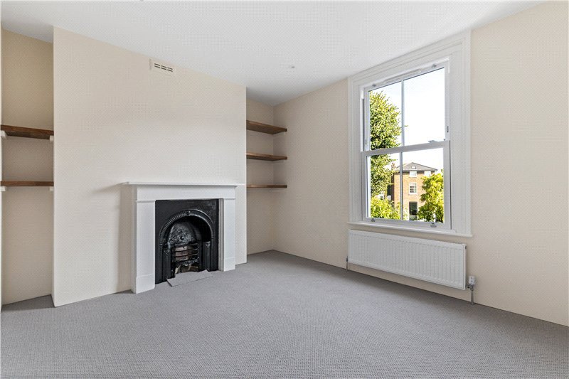 On the raised ground floor, a spacious reception room welcomes you, featuring an period fireplace and elegant cornicing, with ample space for freestanding furniture. Adjacent is a versatile second reception room, which could also serve as a bedroom, offering views over the garden and additional space for furniture.
