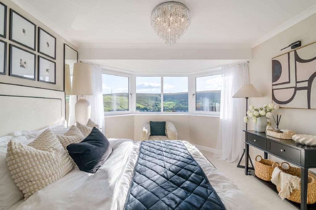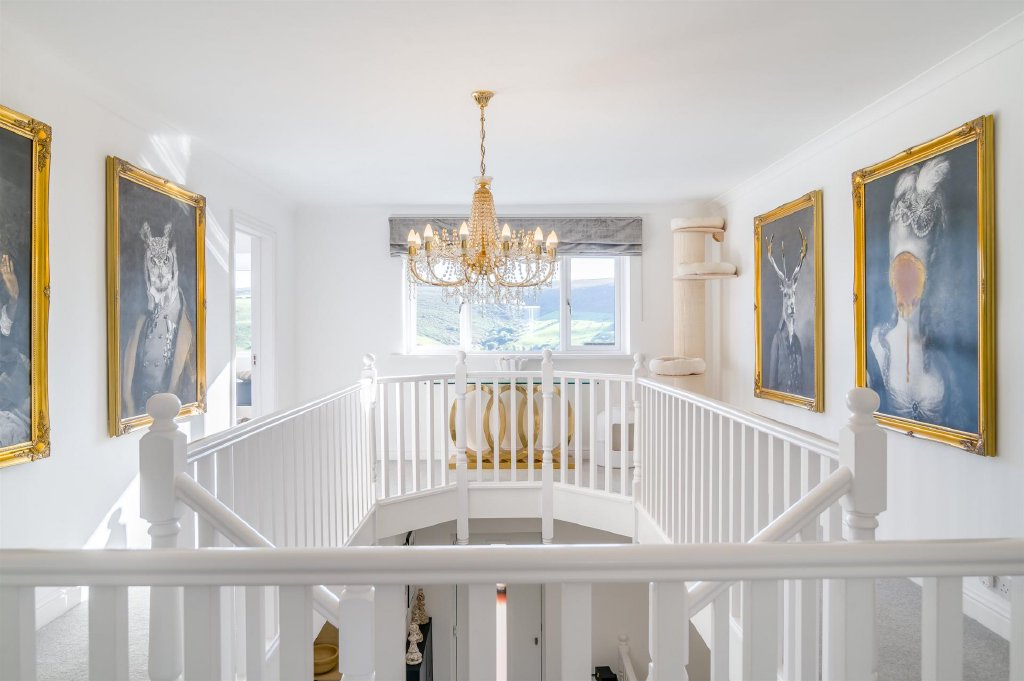 The galleried landing on the first floor has been designed to make the most of a spectacular valley view. It leads to four bedrooms, two with en suites, and a family bathroom.