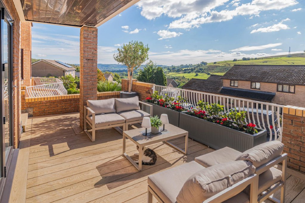 Outside - The house at 29 Ffordd Las has been built on an elevated site and every inch of space is used to great effect, with several places to sit out to enjoy the glorious views or entertain.