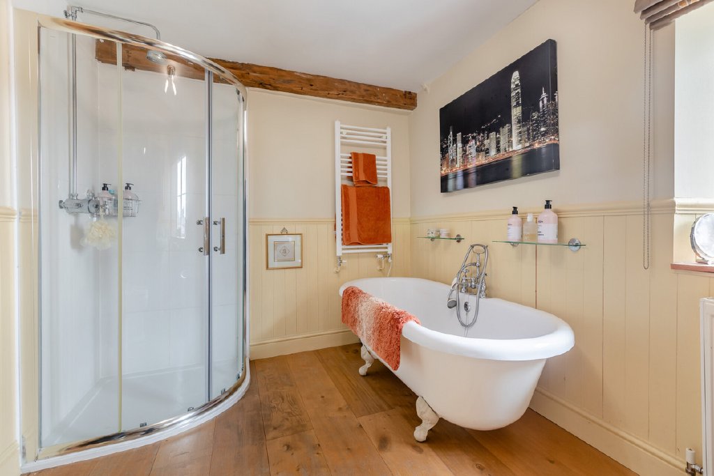 The principal bedroom is exceptionally sizeable, with a W/C and a separate well-appointed en-suite bathroom with both a freestanding roll top bath and shower enclosure.