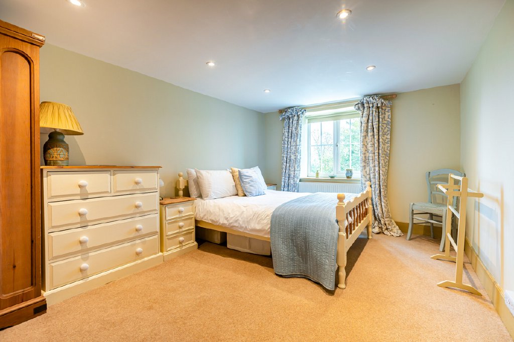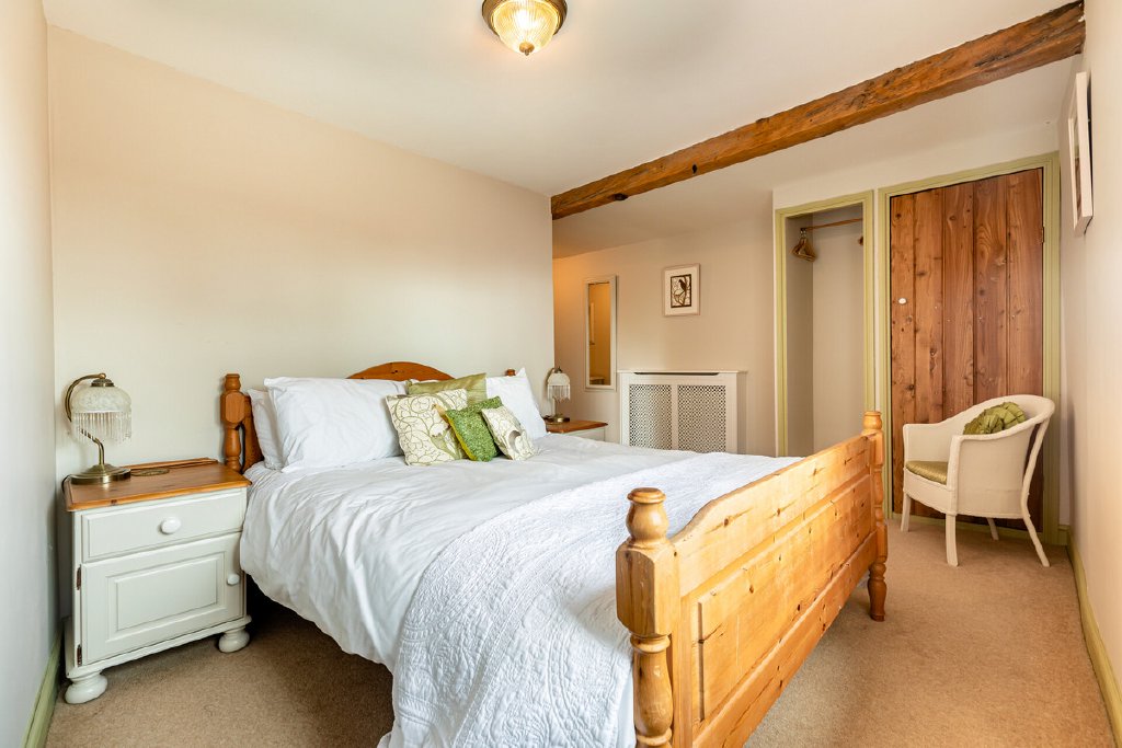 The high-quality kitchen features solid wood and granite worktops and is fully equipped with a range of integrated appliances. A central island with a breakfast bar adds both functionality and style, while the Aga enhances the room’s charm and provides a cosy warmth to the spacious layout. Additional highlights include an integrated oven and microwave, a dishwasher, and a sink positioned to overlook the pretty courtyard.
