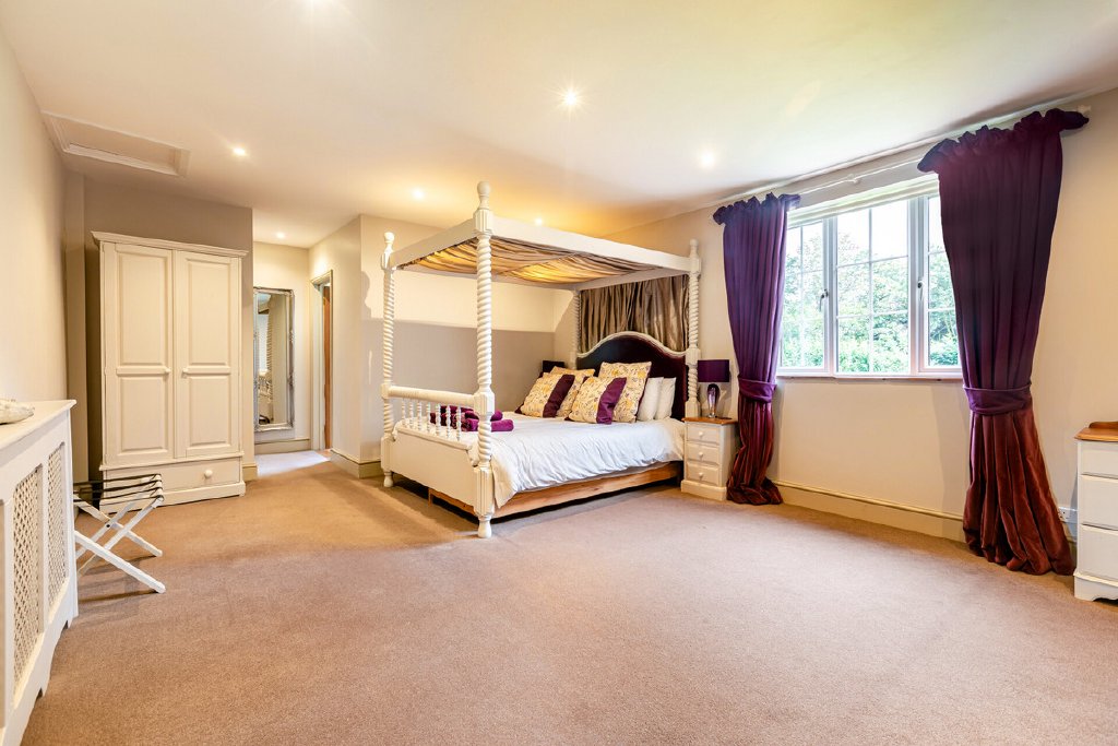 The master bedroom suite is a fantastic size, filled with natural light and has beautiful views. It features its own dressing room and a luxurious en-suite bathroom, complete with a freestanding bath and a separate shower enclosure.
