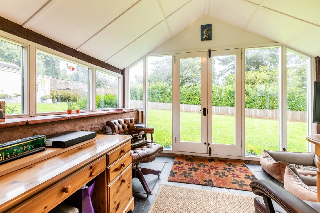 Step through a wrought iron gateway into the stunning south-facing gardens, beautifully maintained and planted with an array of mature trees and shrubs. Tucked away from the main house, a detached barn has been thoughtfully converted into a versatile space, currently used as a home office with charming garden views and a private gym. This is such a versatile space that it can also be used as a home cinema.