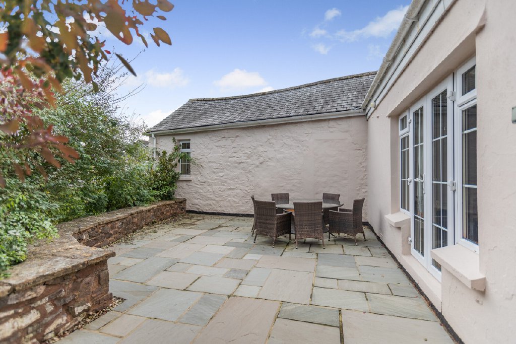 The reception room in the annexe is incredibly spacious with its own fireplace and wood burner, with French doors that open out onto its own private terrace.