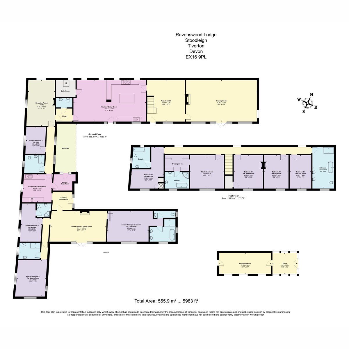 Ravenswood Lodge offers a total of nine bedrooms, thoughtfully divided between the main house (five) and an attached annexe (four), with a variety of configurations possible, depending on your requirements.