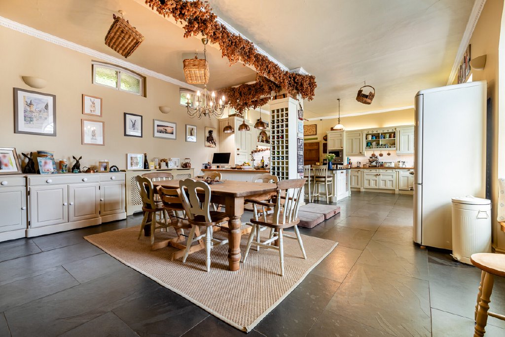 The stable door opens into the heart of the home, revealing a welcoming and beautifully presented country style kitchen-diner. The generous proportions and high ceilings create a wonderful sense of space, blending traditional charm with modern practicality.