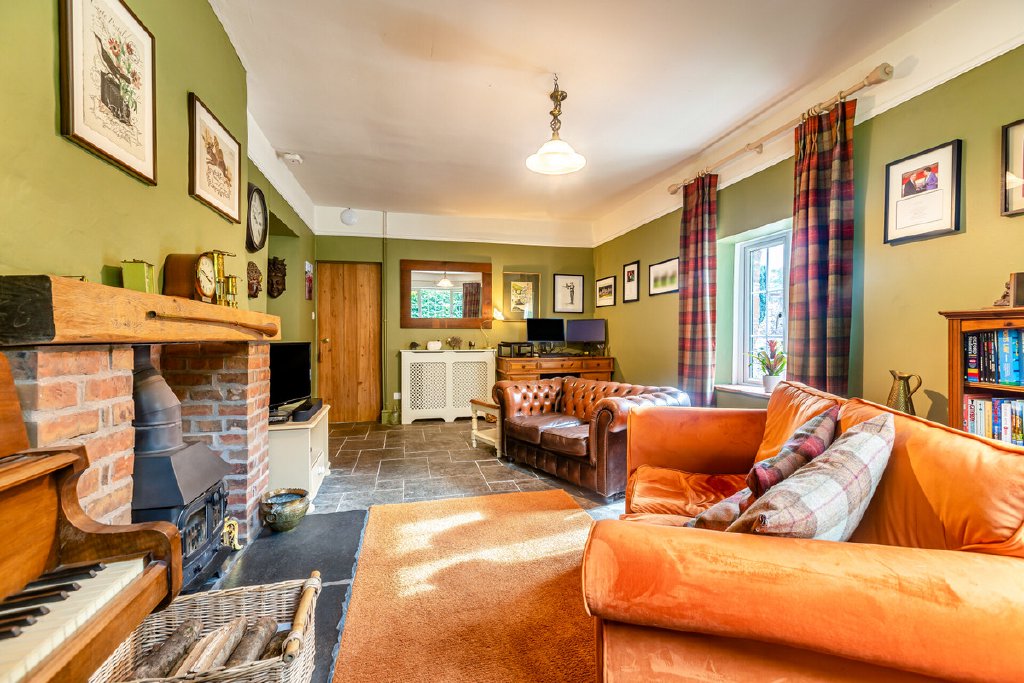 The inner lobby leads to a ground floor cloakroom and an additional cosy dual-aspect reception room. A fireplace with wood burner adds to the comfort of this room. A lockable door provides access to the self-contained annexe.