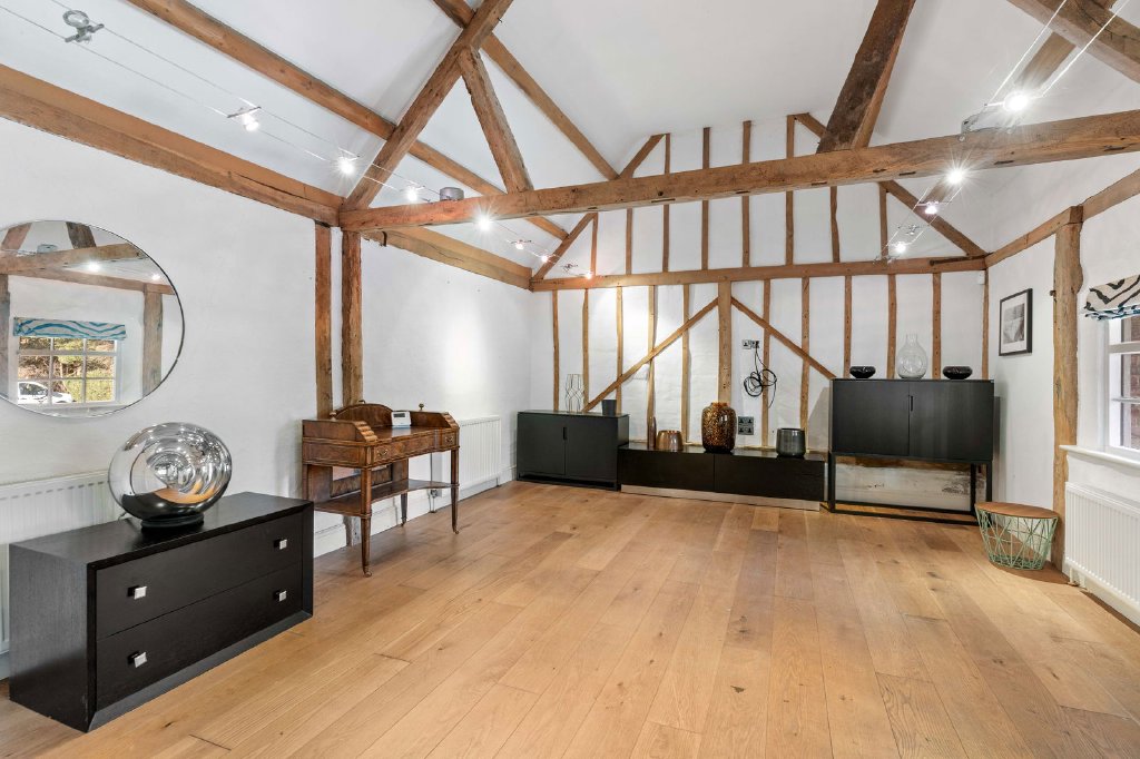 Set behind two gated entrances, the property is approached by a sweeping driveway and beautiful Coach House, in keeping with the house itself, with garaging and an additional detached Cart Lodge. The main residence offers four double bedrooms with a principal en-suite and spacious reception rooms showcasing a wealth of period features. Barfield Farm is approached by a sweeping driveway with extensive parking and access to the charming Coach House with garaging and an original Cart Lodge.