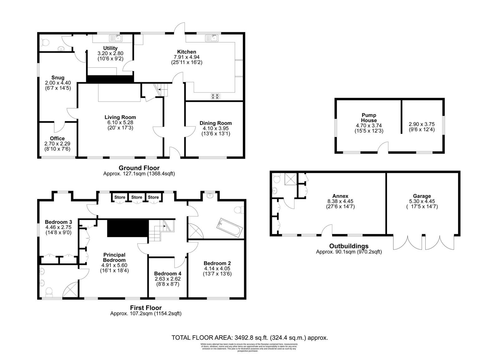 The detached Coach House and Cart Lodge offer versatility, being perfect for guest accommodation, being self-contained with a shower room. Alternatively this area could be used as a Home Office, a home Gym or just for storage. Within the gardens there is also a summerhouse and pump room which also provides garden storage.