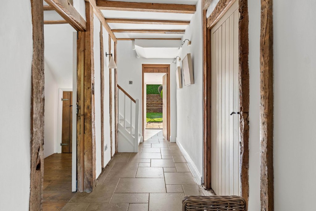 Step inside into a beautiful entrance hall, a fitting welcome into this historic home with original features including exposed beams and leaded light windows. The heart of the home is the central main reception room with an Inglenook fireplace with Bressumar beam and woodburning stove, ideal for winter evenings with family and friends. There is a formal dining room offering views over the grounds. The bespoke kitchen/breakfast room features an original black stove and hand-crafted white oak units featuring a range of built-in appliances including a Miele coffee machine, microwave and a Rangemaster cooker with French doors opening out to the sun terrace, perfect for outside entertaining and relaxation. There is also a snug/home office, a generous utility/boot room and a cloakroom.