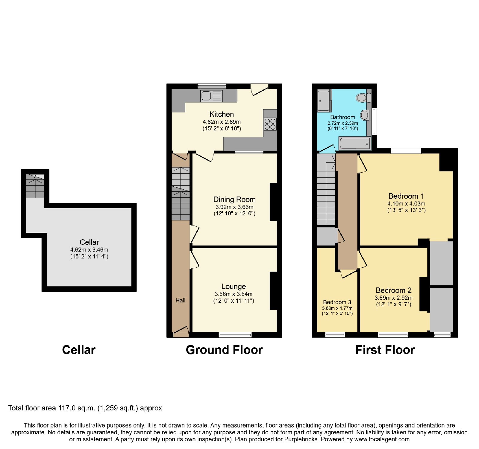 A charming three-bedroom period terraced home, ideally situated close to Macclesfield town centre and its excellent amenities. This well-presented property offers 1,259 sq. ft. (117 sq. m.) of accommodation arranged over three floors, blending character features with versatile living spaces. The ground floor comprises a welcoming lounge with feature fireplace, a spacious dining room ideal for entertaining, and a kitchen with ample storage and worktop space. A useful cellar provides additional storage. On the first floor, there are three well-proportioned bedrooms, including a generous master bedroom, complemented by a bright family bathroom with both bath and shower facilities. The property also benefits from an enclosed rear garden, perfect for relaxing or entertaining, with space for outdoor furniture and planting. Brock Street is a popular residential location, within walking distance of Macclesfield town centre, train station, local shops, cafes, and schools, while offering easy access to the beautiful surrounding Cheshire countryside. This property would make an ideal home for first-time buyers, young families, or investors looking for a strong rental opportunity.