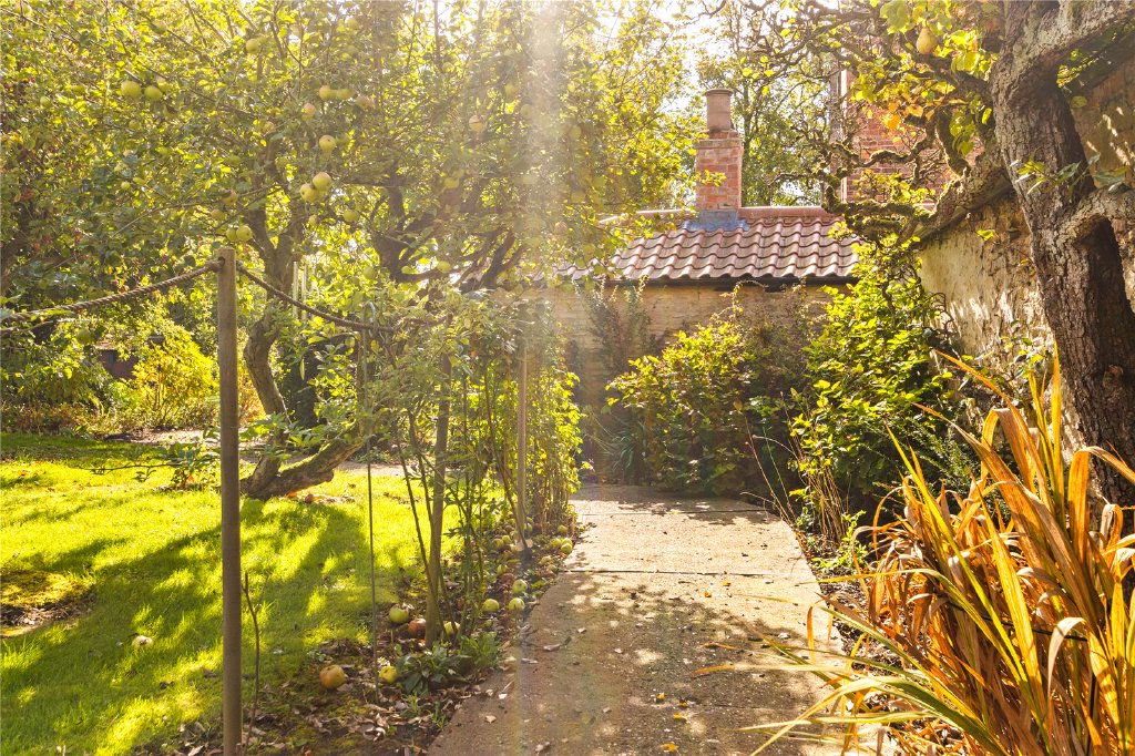 Outside, the home sits within a mature plot approaching two-thirds of an acre, largely walled and exceptionally private. A broad gravelled driveway provides ample reception parking and leads to the former coach house, now a 25ft garage with tall doors. A charming rear courtyard is enclosed by a group of characterful outbuildings including the former groom’s room, bottling shed, and wash house. One has been converted into a dedicated workshop, while the others offer exciting potential for further workspace or ancillary accommodation.