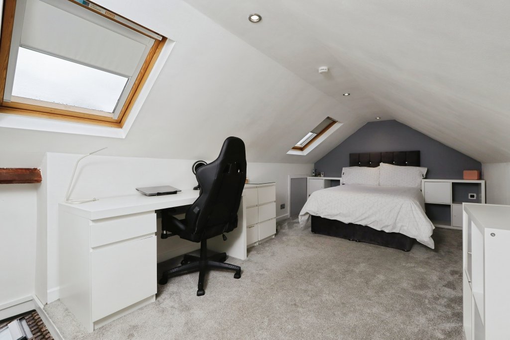 Beautifully Extended & Modernised Semi-Detached Home with South-Facing Garden, Driveway & Garage Offered to the market in true walk-in condition, this stylish and recently upgraded semi-detached home enjoys a peaceful setting within a quiet, established residential area. The property has been thoughtfully extended and features generous garden grounds, including a south-facing rear garden, private driveway, and detached garage. Inside, a welcoming hallway leads to a bright front-facing lounge, which flows into the rear extension currently used as a dining room, with views over the expansive south facing rear garden. The modern kitchen is well-equipped with a range of base and wall units and integrated appliances including a microwave, dishwasher, fridge, oven, hob, and extractor. A practical utility room houses an integrated washing machine and leads to a convenient downstairs WC, with direct access to the rear garden and patio—perfect for outdoor entertaining. Upstairs are two well-proportioned double bedrooms. The master bedroom includes built-in storage, while the second has access to a fully lined attic via a fixed staircase. This heated attic space offers ideal potential for a home office, hobby room or extra living area. A high-spec family bathroom completes the accommodation, featuring a large walk-in shower, modern tiling, a three-piece suite, underfloor heating, and a heated mirror with integrated lighting. Additional features include a modern gas central heating system with an energy-efficient HIVE system, double glazing, energy efficient LED lights throughout, and excellent storage throughout. This immaculate home will appeal to a wide range of buyers seeking modern comfort in a sought-after location.