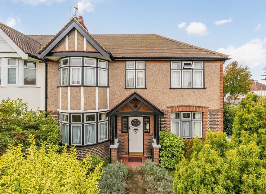 A rare double-fronted 1930s house on a substantial corner plot on sought-after Spring Grove Road, boasting a striking facade, beautiful wrap-around garden extending to the rear, garage, and private driveway. This elegant three-bedroom, two bathroom semi-detached home, thoroughly renovated just over ten years ago, offers period charm, generous proportions, and exciting potential to extend (STPP). The property showcases classic 1930s character- original fireplaces, bay windows, picture rails and high ceilings.