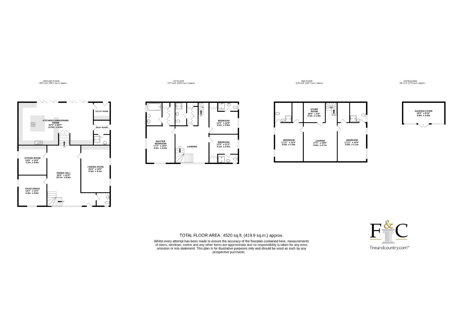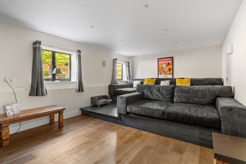 The Accommodation Entering this stunning home, you are immediately wowed by the natural light and grand dining hall with elevated ceiling. This room can be used for formal dining, a great family space and living room or why not add a pool table and create a central entertaining area and games room. There is engineered oak flooring throughout the ground floor, and a beautiful glass feature window to the front that lets the light flood through. There is a cloakroom just to the right of the entrance and to the left a study / snug ideal for those working from home. There is a generous cinema room with newly installed bespoke seating and smaller sitting room or games room, ideal for a growing family and children of all ages to have their own space. An oak staircase leads you to the first floor with a galleried landing, this could also offer a great study area.