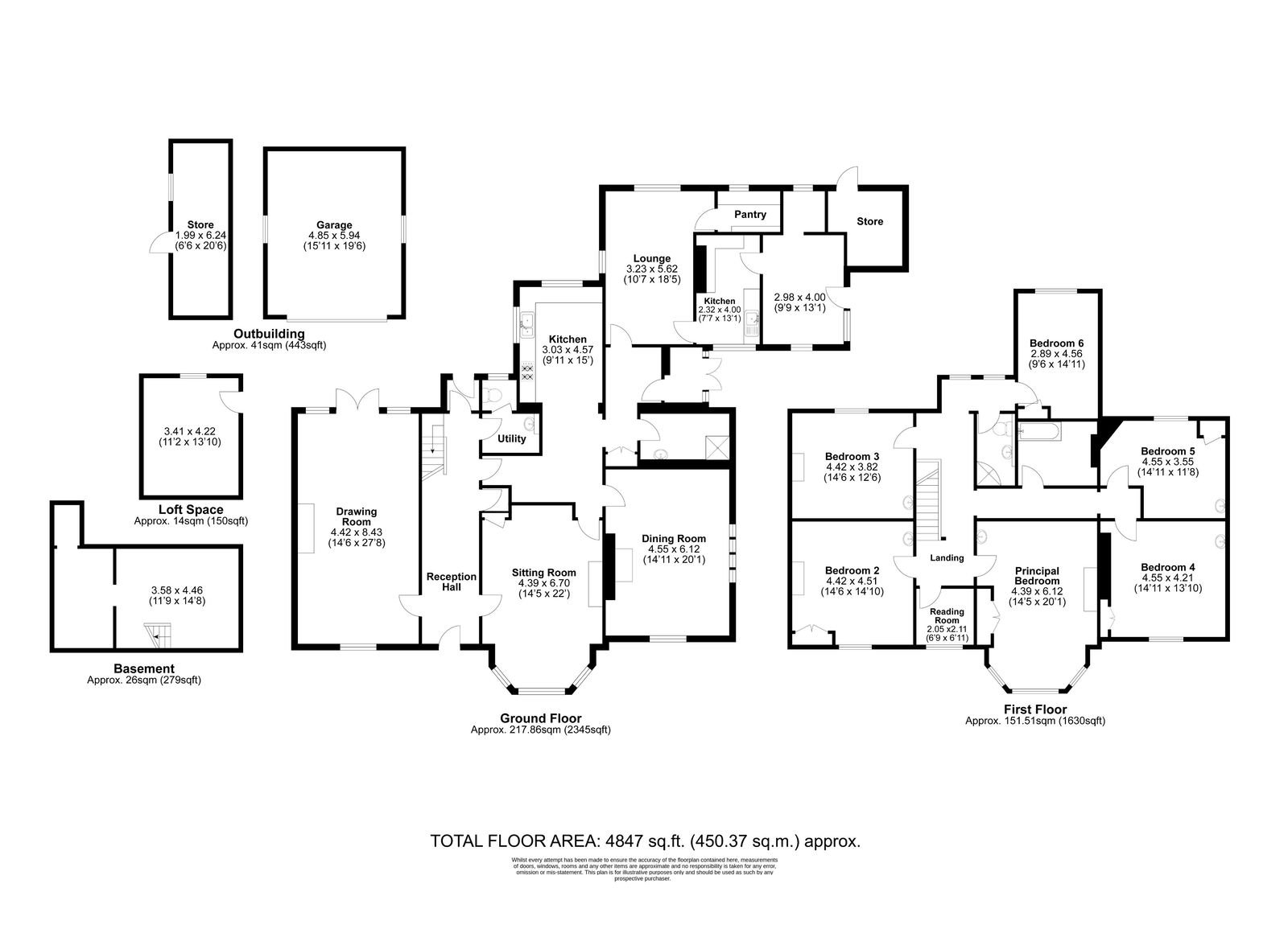 Upstairs, the home provides six well-proportioned bedrooms together with two bath/shower rooms (there is an additional shower room to the ground floor), offering ample accommodation for family living. There is also excellent scope to reconfigure and update the layout, creating a more contemporary arrangement while retaining the character and charm of this period home.