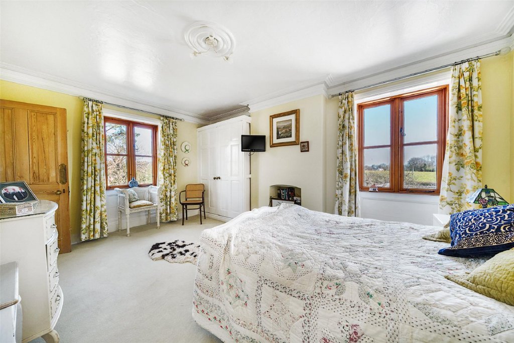 Also on this floor is the principal double bedroom, enjoying countryside views from two aspects, along with a generous en-suite bathroom. A walk-in wardrobe cupboard is conveniently located off the landing, adding further practicality to this well-designed space.