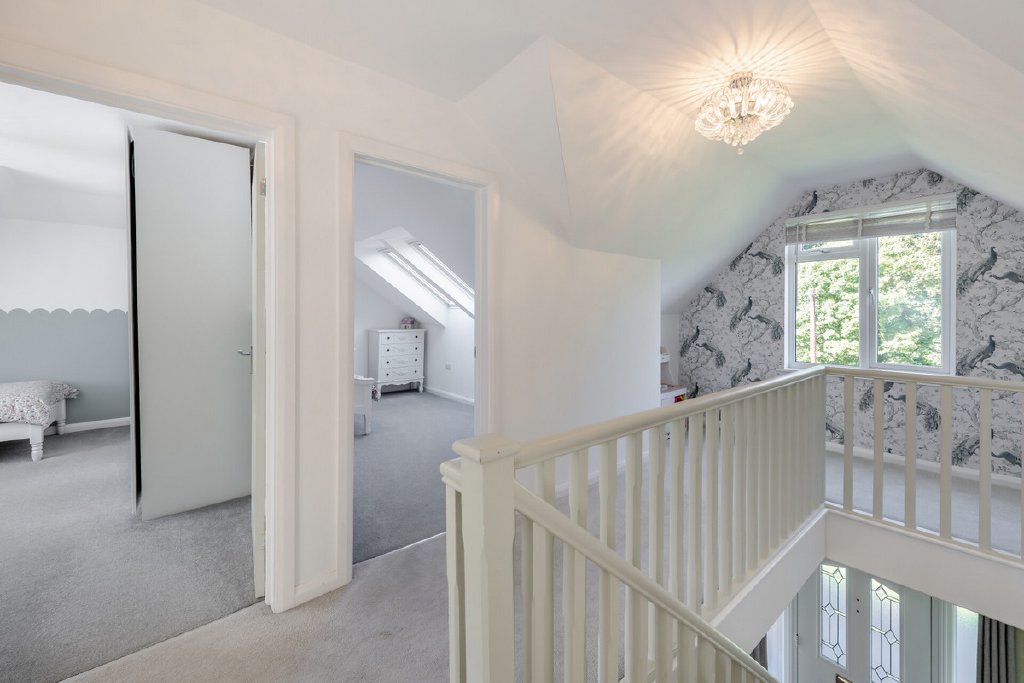 The landing is generously sized and naturally lit via a large window, offering space for additional storage or even a reading nook.