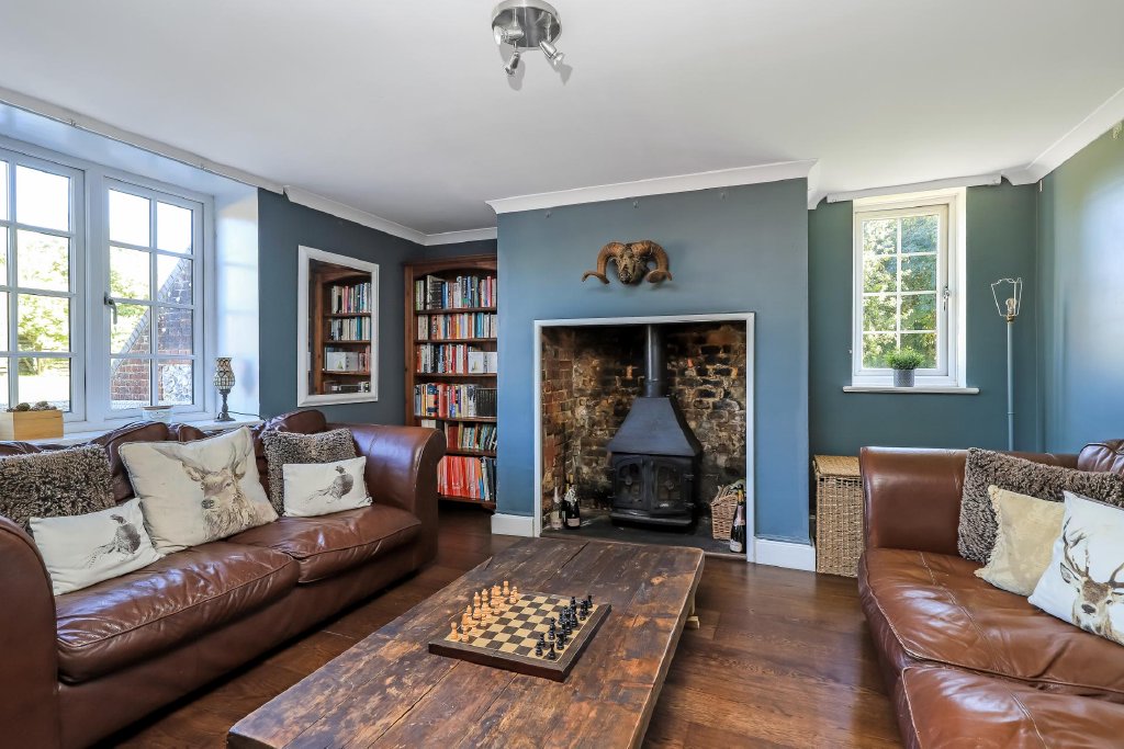 SITTING ROOM 13' 4" x 12' 9" (4.06m x 3.89m) Exposed brick surround fireplace with log burner, double glazed window to side aspect, radiator, solid oak flooring, ceiling coving.