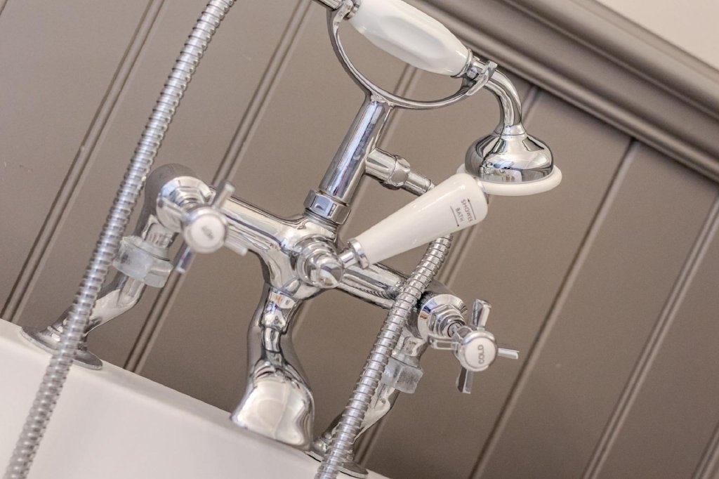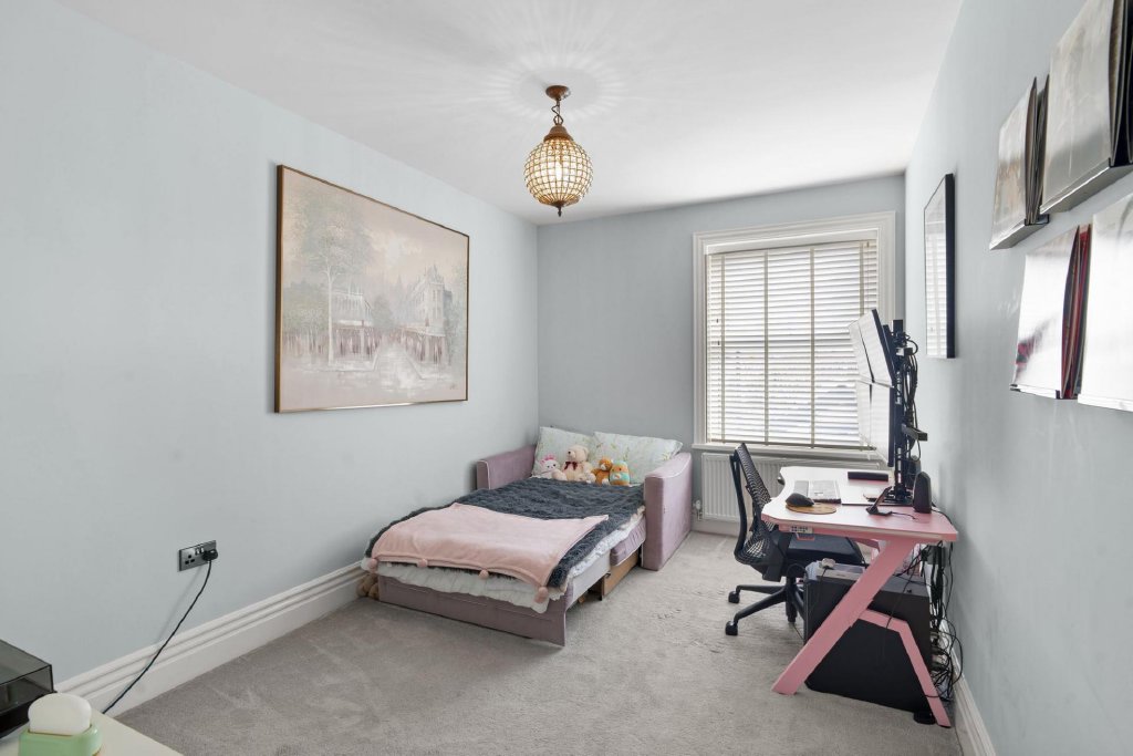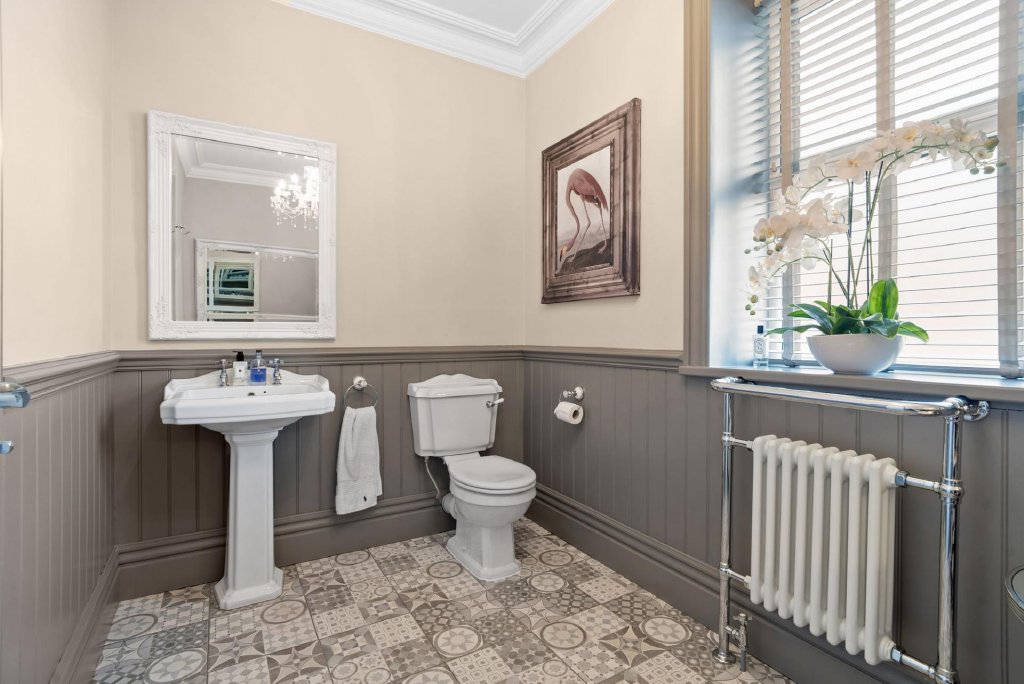 Steps down from the garden lead to a quadruple garage, complete with underfloor heating throughout and a heated room above with ensuite. This versatile space provides exceptional flexibility and can be used as a guest suite, home office, playroom, garden room, workshop, or private annexe. With its own ensuite and independent access, it also presents the potential for Airbnb income, adding an additional lifestyle and investment opportunity.