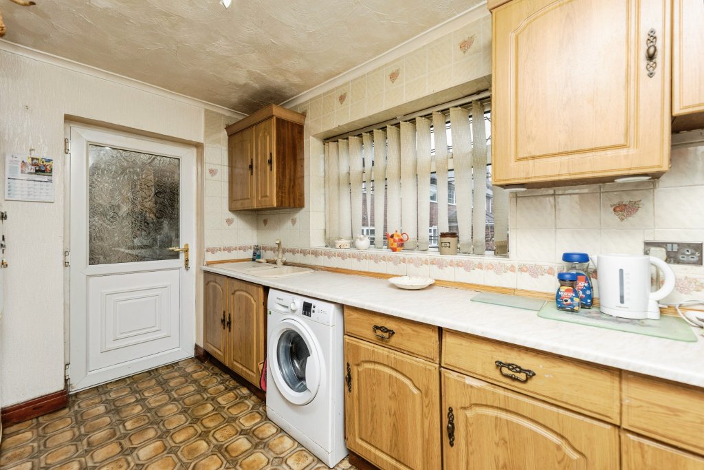 Three Bedroom Semi-Detached Home – No Upward Chain Offered with no upward chain, this three-bedroom semi-detached property is full of potential and presents an excellent first-time buyer opportunity. Situated on a generous corner plot, the home benefits from gardens to the front, side, and rear. Ground Floor: The property is entered via a welcoming entrance porch, leading into the inner hall with access to both the lounge and dining room. The lounge is a good-sized, light-filled room featuring patio doors opening out to the rear garden. The dining room leads through to the kitchen, which is fitted with a range of wall and base units, an electric oven with gas hob, space for a fridge/freezer, and plumbing for a washing machine. There is access to 2 outbuildings and downstairs wc from the kitchen. First Floor: Upstairs comprises two double bedrooms and a single bedroom, along with a family bathroom fitted with a walk-in shower cubicle, hand basin, and WC. The property benefits from double-glazed windows and gas central heating throughout. While the home would benefit from some modernisation, it is competitively priced to reflect this and offers superb potential to become a lovely family home.