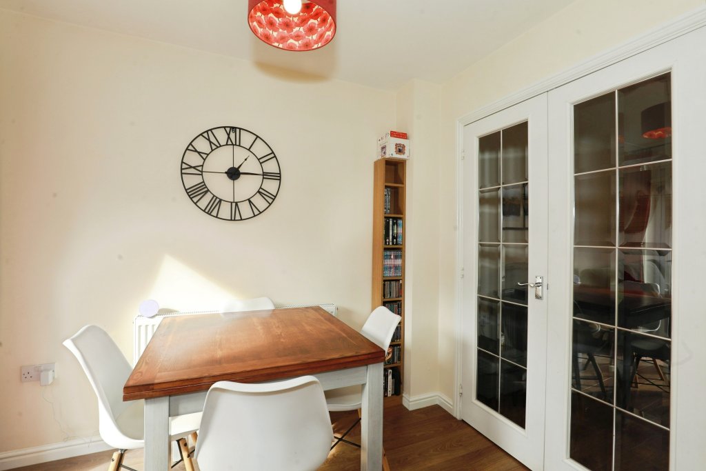 Set on the popular Reedmace Walk development, this modern detached family home offers a stylish open-plan layout, three bedrooms and beautifully maintained gardens – the perfect mix of comfort, convenience and contemporary living. The property opens with a welcoming entrance hall and a handy ground floor W.C. To the front, the lounge is bright and inviting, offering a comfortable space to relax and unwind. Double doors lead through to the open-plan kitchen and dining room, creating a lovely sense of flow throughout the ground floor. The kitchen is fitted with modern units, integrated appliances and ample worktop space, while the dining area provides plenty of room for family meals or entertaining. Patio doors open directly onto the rear garden, filling the space with natural light and extending the living area outdoors. Upstairs, the home continues to impress. The master bedroom benefits from its own en suite shower room, while two further bedrooms offer flexibility for children, guests or a home office. A modern family bathroom completes the first floor, finished in a clean and contemporary style. Externally, the property enjoys attractive gardens to both the front and rear. The front is neatly presented, while the rear garden provides a private and well-maintained space with lawn and patio areas – ideal for outdoor dining, play or simply relaxing. A driveway offers parking for multiple vehicles and leads to a detached garage, giving extra storage or workshop potential. Reedmace Walk is ideally located for families and professionals alike, with local schools, shops and amenities nearby. Excellent transport links connect easily to Newcastle-under-Lyme, Stoke-on-Trent and the wider Staffordshire area, making commuting straightforward. With its modern design, spacious layout and welcoming feel, this is a home ready to move straight into and enjoy – perfect for those looking for comfort and convenience in a great location.