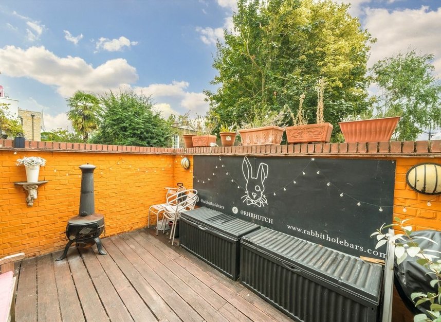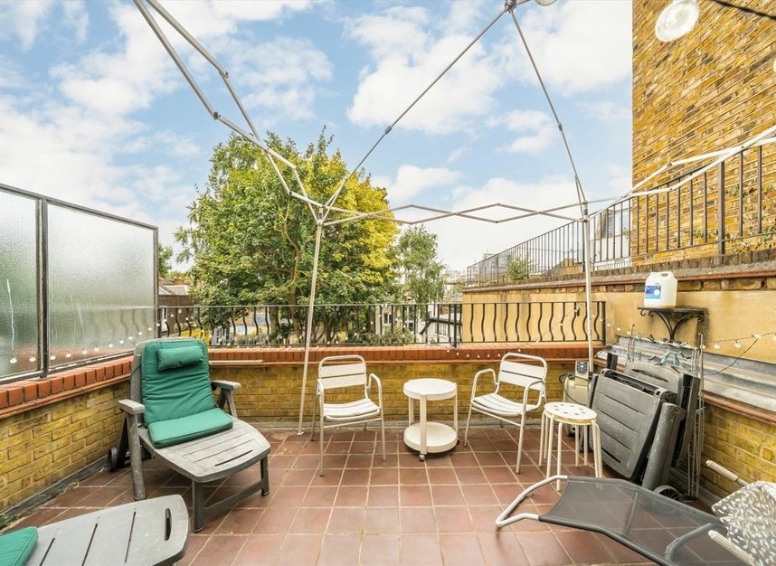A beautiful terrace town house built in the1990's with bags of character throughout. The property has five bedrooms, four bathrooms, a south facing ground floor patio garden, a first floor terrace, a second floor Juliette balcony and on the top floor there is an additional roof terrace. Planning has been approved for solar-voltaic panels on the roof.