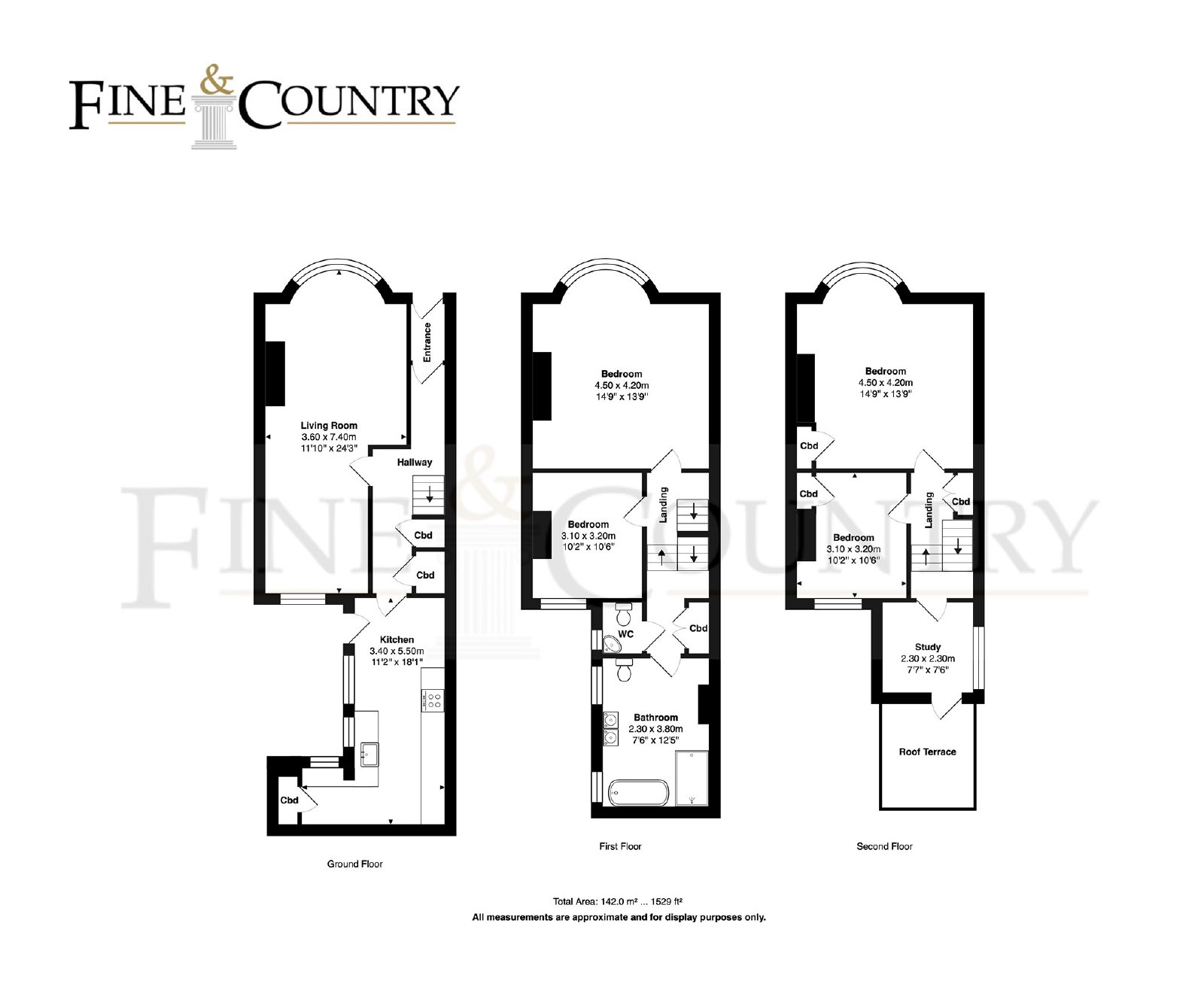 On the three quarter landing, a further room offers versatile use as office space and or guest bedroom and leads directly onto the sunny roof terrace.