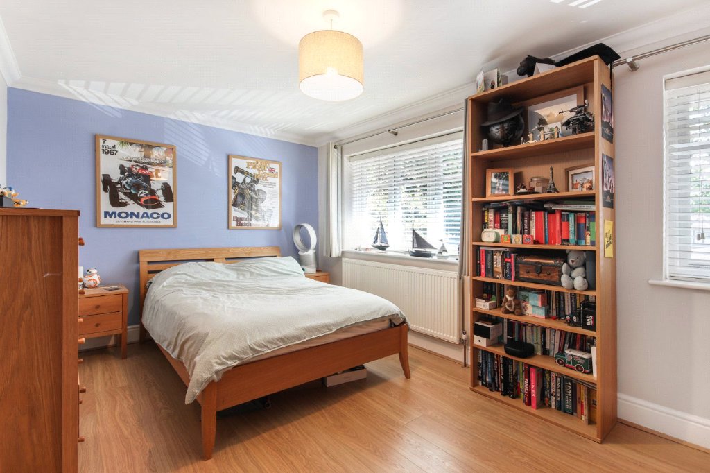 Bedroom Three 16'1" x 9'9" (4.9m x 2.97m). Two double glazed windows to front. Plain coved ceiling. Wood effect flooring. Radiator. Fitted wardrobe.