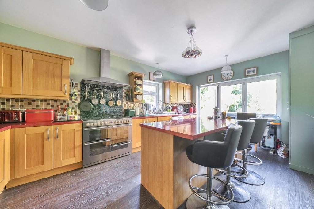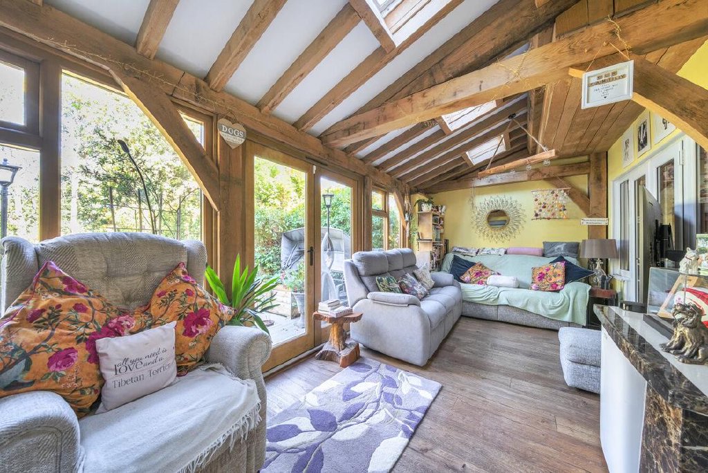 Situated on a lovely residential road on the sought-after south side of West Wickham, this substantial Spencer-designed semi-detached home offers over 1,800 sq ft of flexible living space, full of charm and character. The well-proportioned layout currently features four generous double bedrooms, a family bathroom and en-suite to master, a welcoming dining hall, cloakroom, two reception rooms, large oak-framed garden room and a spacious 23’ x 18' kitchen/breakfast room with utility room.