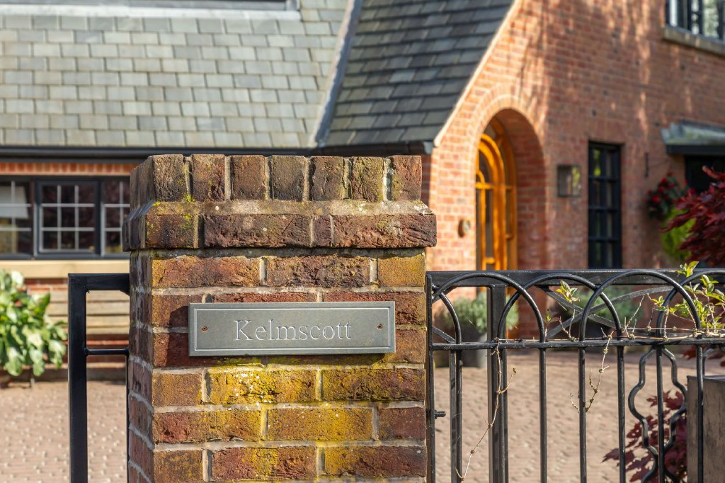 The gardens are an attractive feature of Kelmscott. They wrap around the house and provide enormous privacy and screening to three sides, as well as being enclosed and thus secure for children and dogs. The front elevation has a more open aspect with a wide block paved drive approached through an electric sliding wrought iron gate with parking for several cars as well as garage access. Set back from the road the front garden is lawned with planted borders and wrought iron fencing.