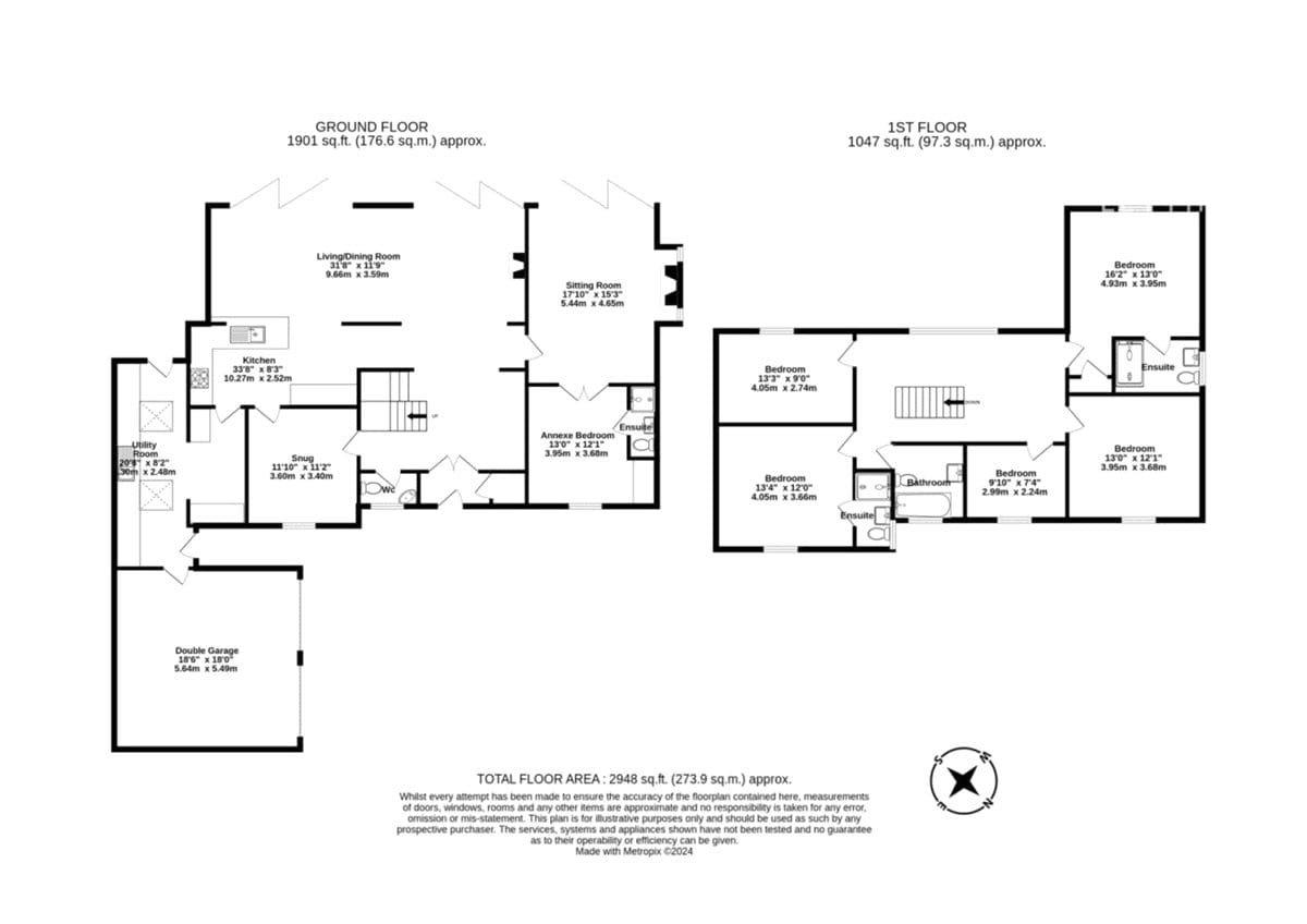 Adjacent to the kitchen, a separate lounge with bi-folding doors provides a seamless transition to the garden, enhancing your indoor-outdoor living experience. The additional room off the lounge, currently utilized as a ground-floor guest bedroom with ensuite, offers versatility for your family's needs. For those working from home, the snug at the front of the property is an ideal office space. A spacious utility room adds convenience, making everyday chores a breeze.