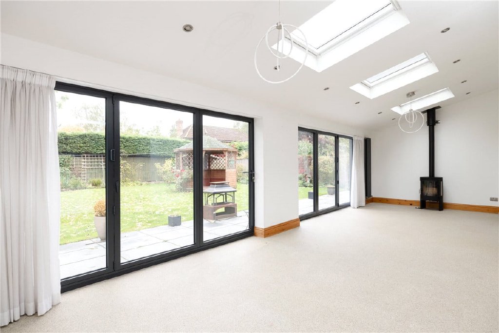 Step inside to find a welcoming ambiance that caters to family life and entertaining. The recently extended kitchen serves as the heart of the home, featuring a wonderful dining and living area where memories are made. With stunning double bifold doors that open up to the west-facing rear garden, this space is bathed in natural light and showcases a cozy log burner, perfect for those cooler evenings.
