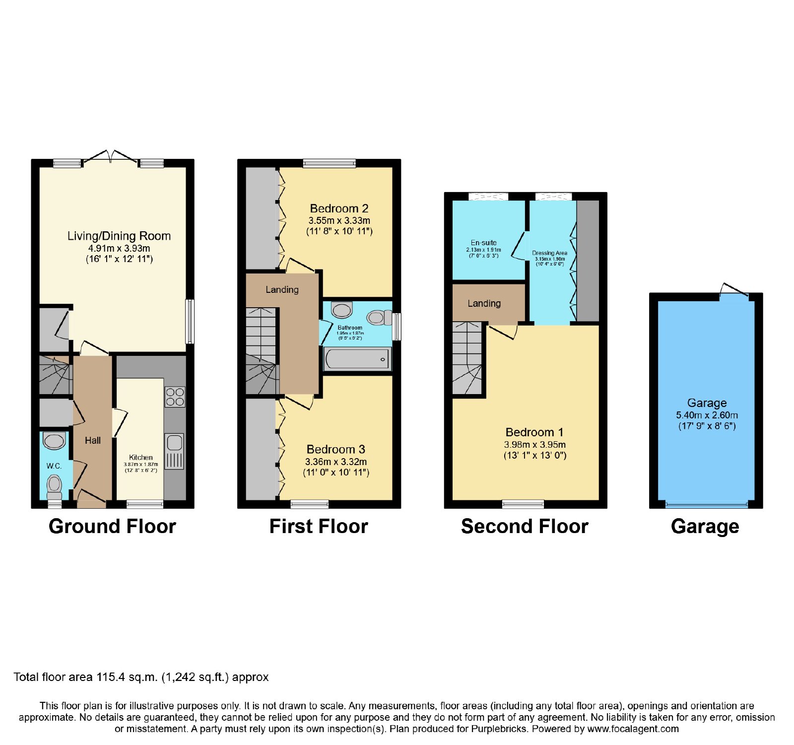 Located on a popular new estate in Gloucester, is this beautifully presented and deceptively spacious three storey, Three double bedroom, end of three terrace. The property has all the modern features one would expect from a new-build property,……Ground floor cloakroom/w.c., end-suite to master bedroom, master bedroom dressing room, integrated kitchen appliances and a detached garage. The property briefly comprises of; Reception hall with stairs to first floor, storage cupboard, ground floor cloakroom/w.c. And access to; Kitchen, with window to front aspect, modern unit it’s to base and eye level, integrated appliances. Lounge/dining room. A spacious room with french doors with side glazed panels out onto the rear patio and garden. Storage cupboard. On the first floor there are stairs up to the 2nd floor and master bedroom, family bathroom suite and two double bedrooms both with built-in wardrobes. The Master bedroom is large with windows to front and rear aspect, dressing area, built-in wardrobes and access to an en-suite. The rear garden is designed for low maintenance with a central Astro-turf style strip surrounded by a paved patio area. Side gate to the side drive and detached single garage. There is a small fenced off front garden and side driveway leading up to the detached single garage which provides off street parking for multiple vehicles. All local amenities including schools and shops are in close proximity.