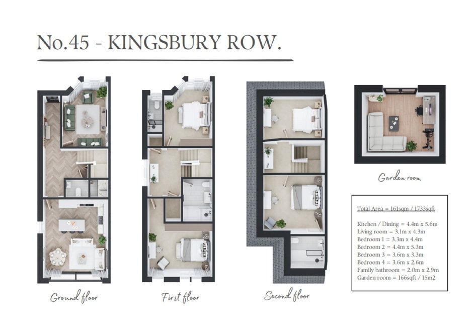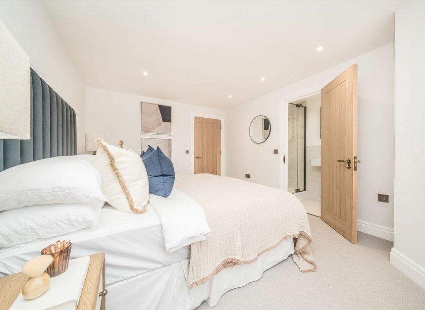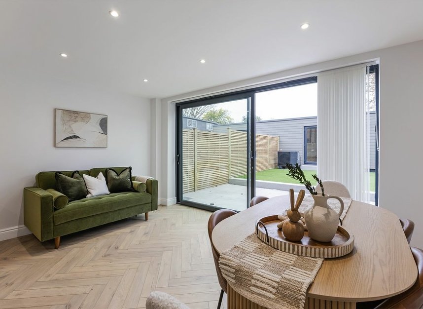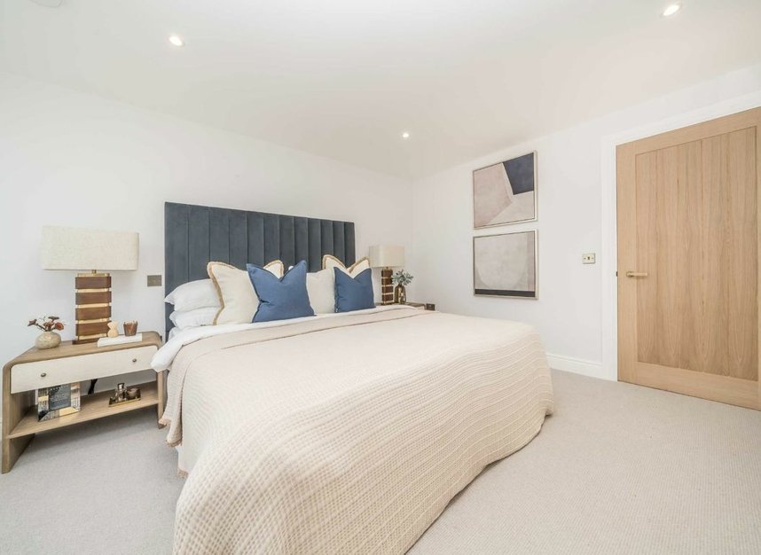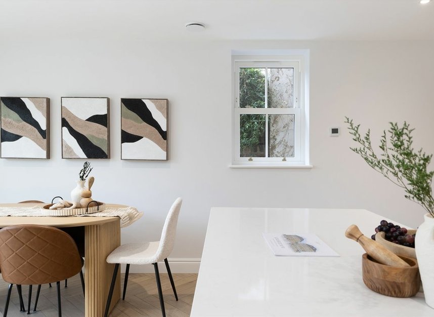 The residences at Kingsbury Row provide well-proportioned accommodation spanning over three floors, plus an additional summer house, perfect for use as a home office or gym. Four double bedrooms, Luxurious bathrooms, Herringbone flooring and bespoke kitchens with SMEG appliances throughout.