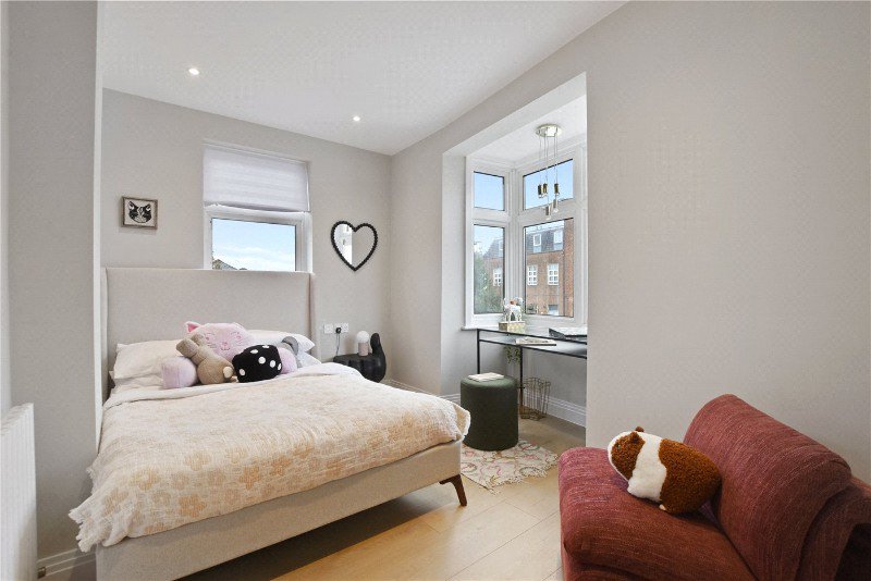 Every aspect of the renovation has been thoughtfully executed, from the high-spec finishes to the modern layout that maximises both space and light. The ground floor features spacious open plan kitchen and dining area, with snug/tv area. The kitchen has ample storage and counter space, with high quality integrated appliances. Bi-fold doors in the snug area sweep open to provide access on to the decked garden. There is a separate reception room to the front of the property, as well as an additional office space/flexible room. A guest WC is located under the staircase.