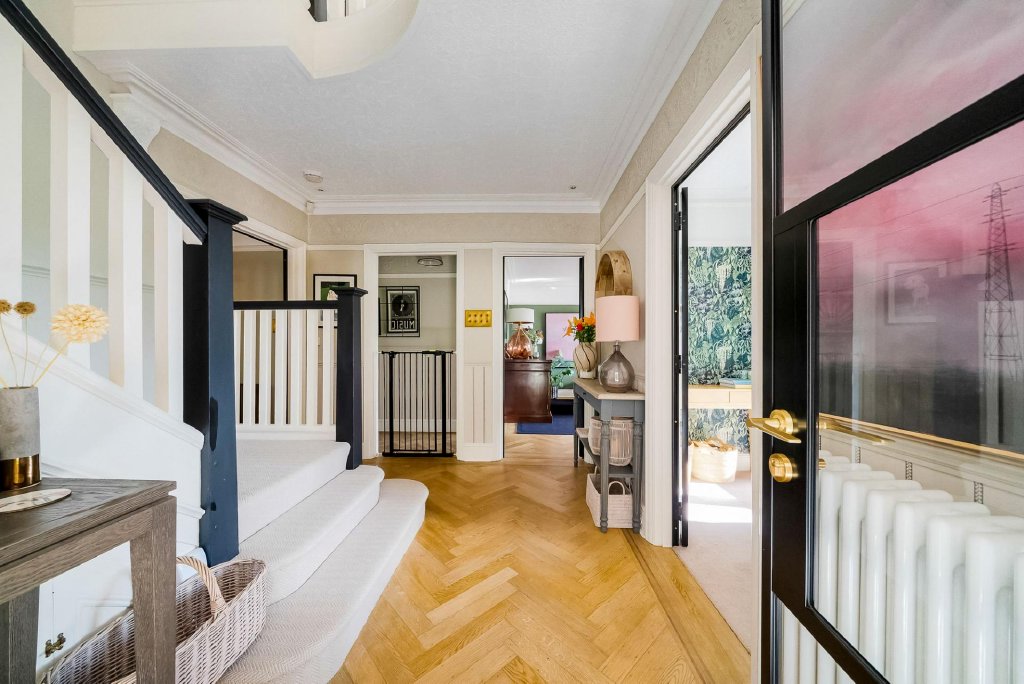 Hammerwood is a beautifully modernised Edwardian residence, being the first house to be built within this quiet cul-de-sac location, that perfectly balances period elegance with contemporary luxury. Set on one of Oxted’s most prestigious roads, this distinguished family home showcases exceptional craftsmanship, timeless design, and a wealth of versatile living space. On arrival, a welcoming boot room with underfloor heating leads into the grand entrance hall, where newly fitted, contemporary Crittall-style glass internal doors and elegant Wainscoting paneling with Edwardian detailing set the tone. The light-filled interiors are enhanced by herringbone flooring and a series of exquisite fireplaces, including a stone fireplace with log burner in the dedicated study. Two impressive reception rooms provide generous living and entertaining space, each own a striking feature fireplace.