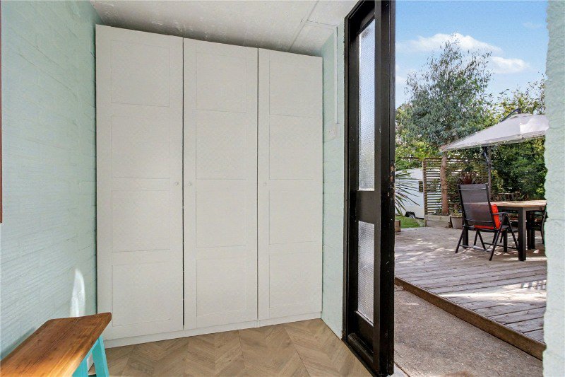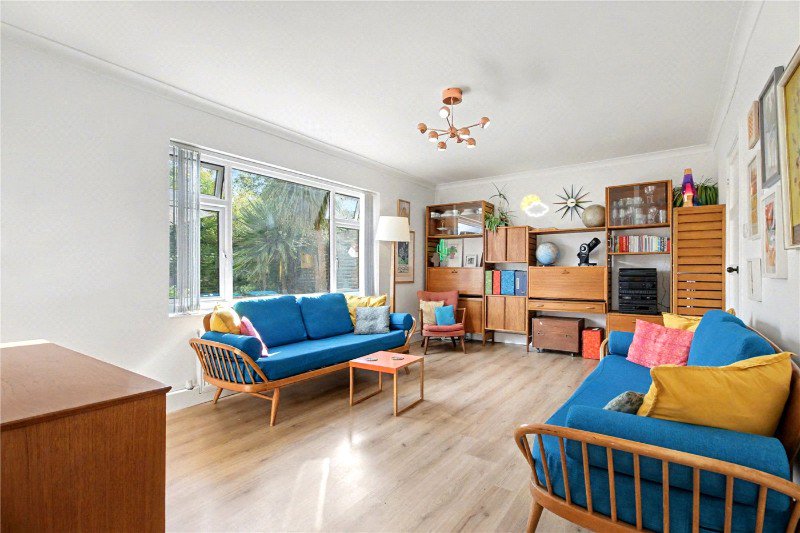 From the moment you step inside, this home has a welcoming, lived-in warmth. The spacious lobby sets the tone – a practical space with room for coats, boots and everyday life, opening into a bright kitchen and dining area that forms the heart of the home. The owners have drawn inspiration from the property’s roots, styling the space with subtle 1960s flair. Cream-fronted cabinets, contrasting worktops and herringbone flooring create a distinctive yet timeless aesthetic – perfectly suited for laid-back family meals or evenings spent entertaining friends. The main reception room is generous in proportion, with a large picture window that frames the front terrace, filling the room with natural light. It’s a space that feels relaxed and versatile – perfect for curling up with a book or gathering everyone together. A door to the rear leads to stairs with a door to the rear garden where there are vegetable beds.