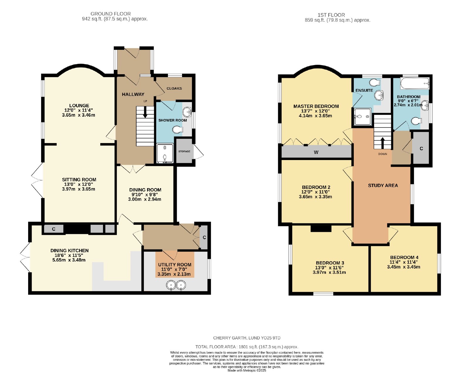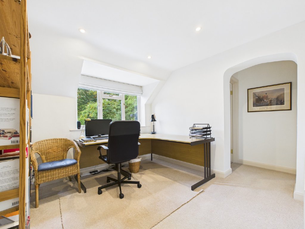Upstairs, four double bedrooms provide generous space for family and guests, complemented by a large study area that’s ideal for working from home. The master bedroom includes an en-suite, with a further family bathroom completing the accommodation. Practical touches such as a utility room, cloakroom, and off-street parking make everyday living easy, while the substantial brick garage adds extra storage and flexibility.