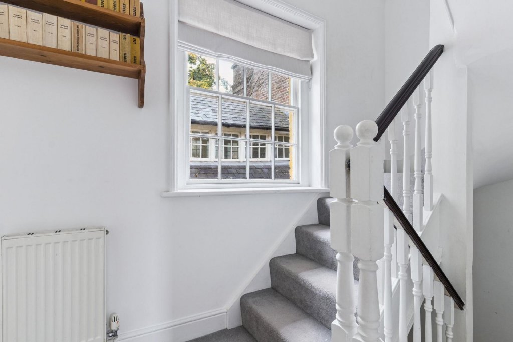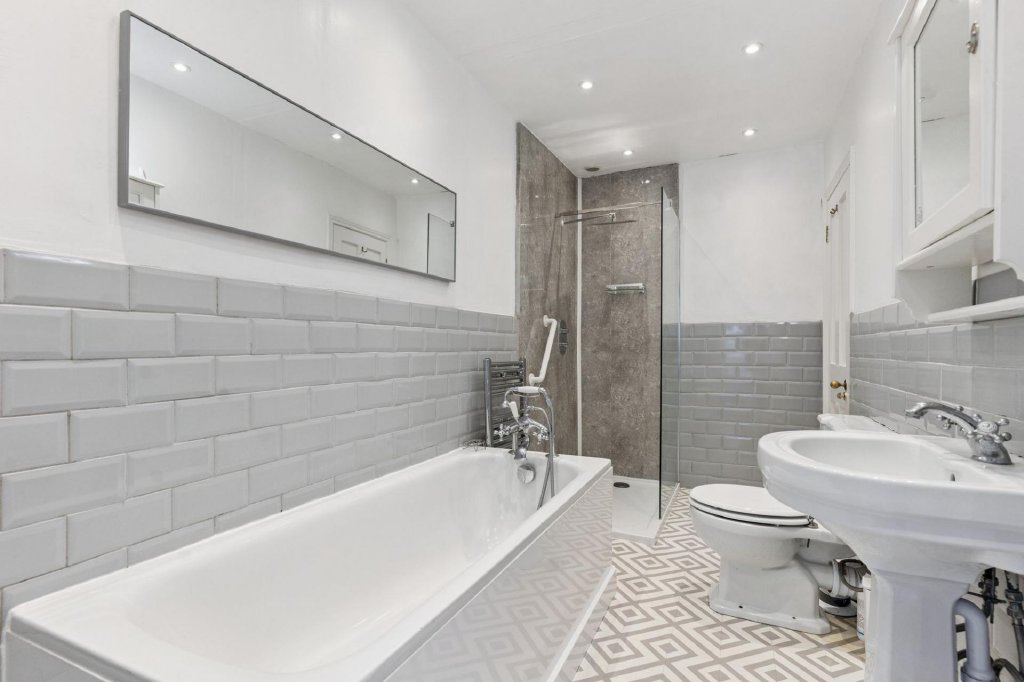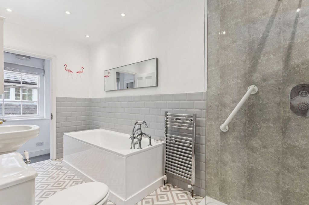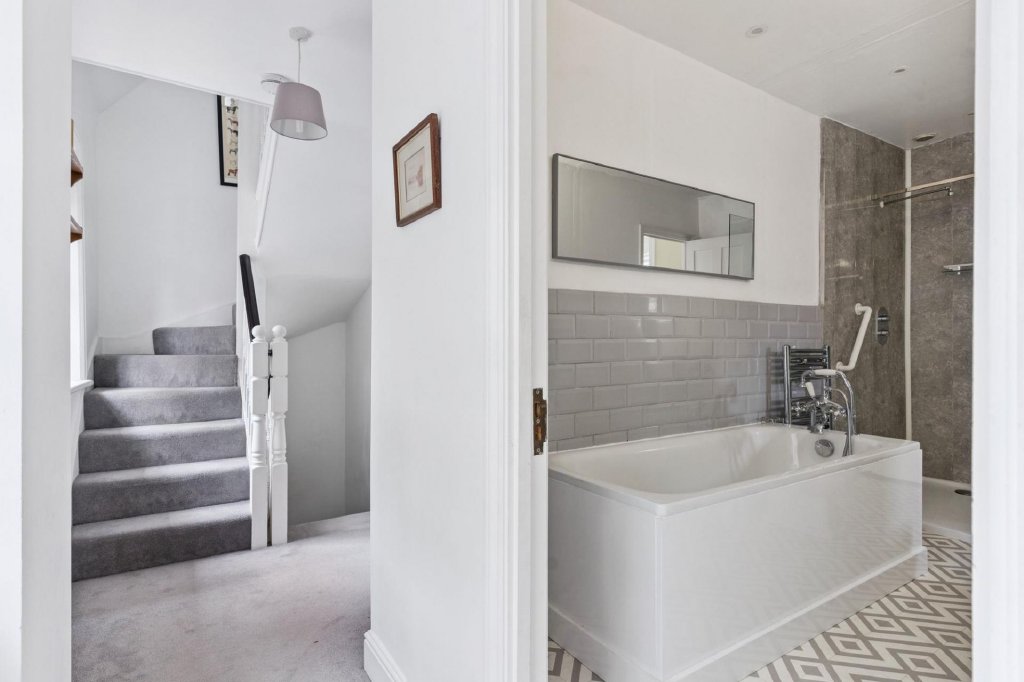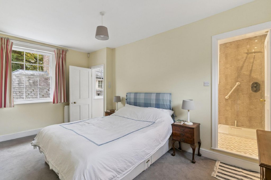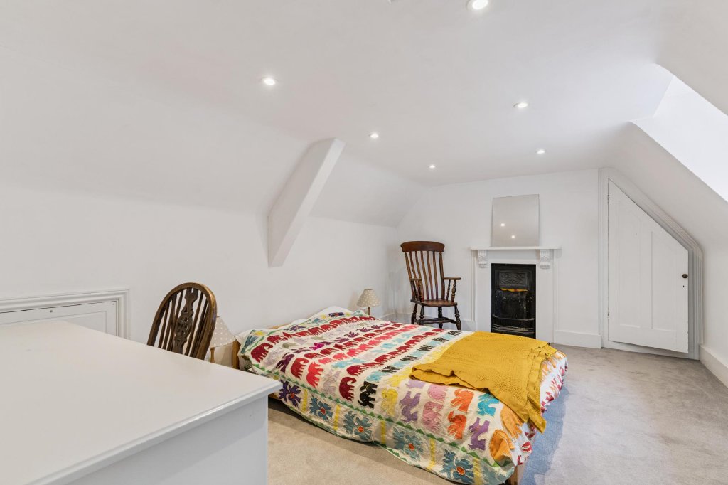 Ascending from the entrance hall, stairs lead to the first-floor landing, providing access to the master suite, a third double bedroom, and a recently refitted ‘Jack & Jill’ four-piece en suite bathroom. The master bedroom is a delightful dual-aspect double, complemented by the en suite, which features a low-level W.C., pedestal wash hand basin, elegant walk-in shower, and a panelled bath — perfect for relaxation and rejuvenation. The third bedroom is another generous double, offering versatile space that can serve as a bedroom or a home office, ideal for working from the comfort of home. From the first-floor landing, a further staircase leads to the second-floor landing, which provides access to the second double bedroom and a bathroom. Bedroom two is a spacious double featuring an open fireplace, while the adjacent bathroom adds convenience for family members or visiting guests.