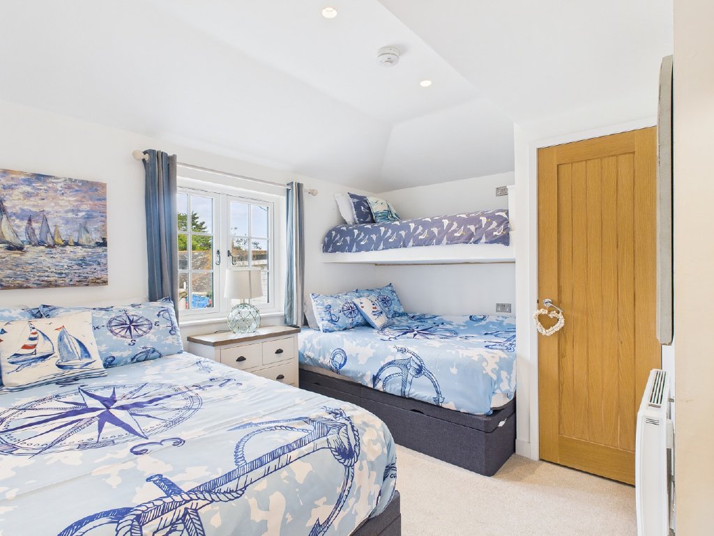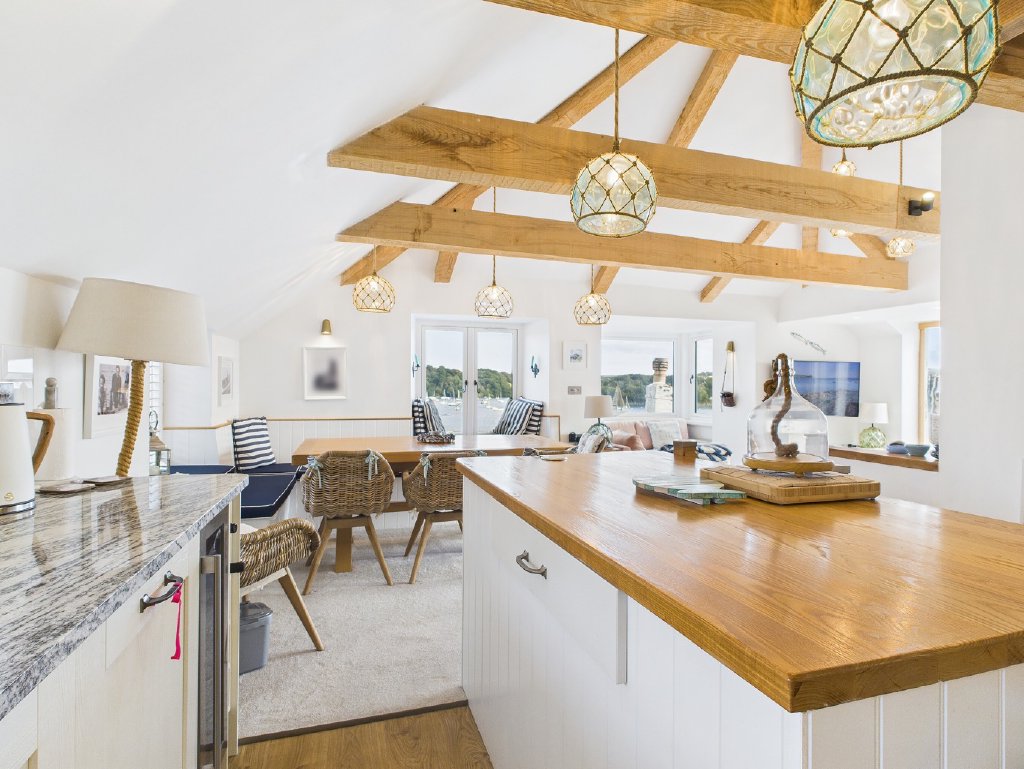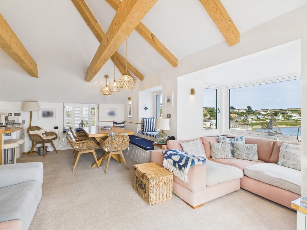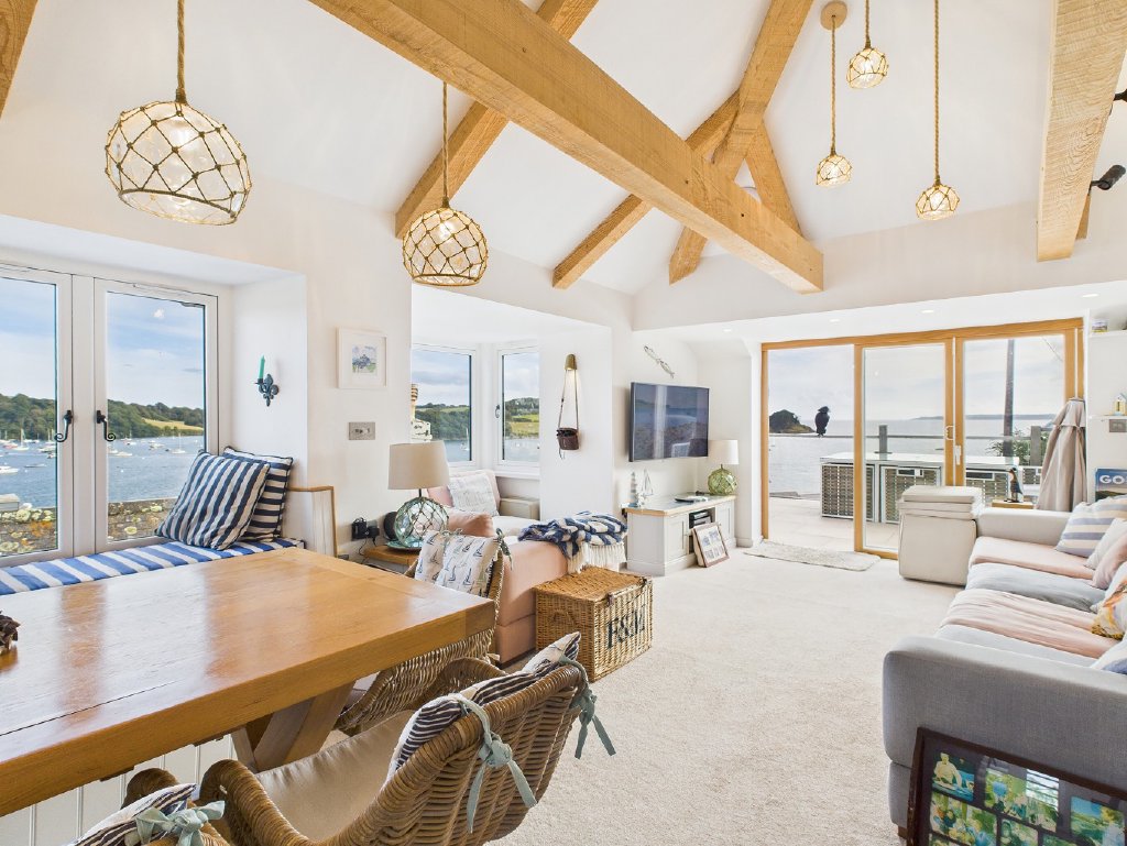 From its elevated southerly position, Jasmine Cottage commands some of the most breathtaking views in St Mawes. Every principal room and each of the outdoor seating areas have been carefully oriented to capture sweeping, uninterrupted panoramas – stretching across the Percuil River to the unspoiled National Trust countryside, and out over Falmouth Bay toward the distant Lizard Peninsula. By day, the outlook is ever-changing, with a lively display of sailing activity unfolding on the water; by evening, it transforms into a serene coastal vista of rare beauty.